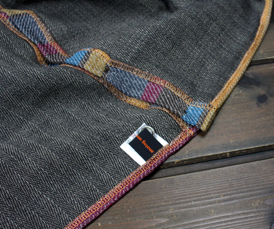 男女兼用の商品で、analog undergroundがコンセプトとしている「一枚の生地をどうまとうか」という考えから生まれた商品です。